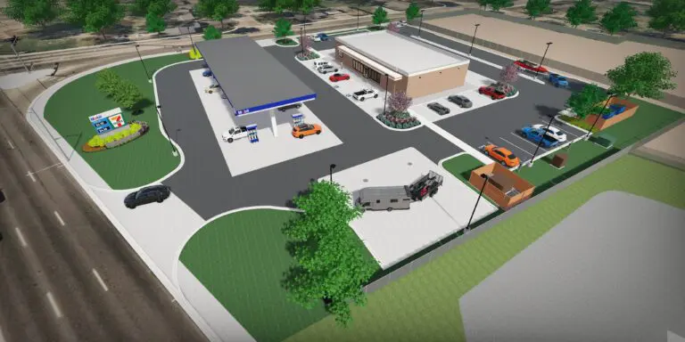 Weaver Consultants Group (WCG) was engaged to prepare civil engineering and landscape plans for a proposed 7-Eleven convenience store and fuel center on a 2-acre lot. This project involved the demolition of two existing commercial buildings to make way for the new development. Additionally, the project included subdividing the lot into two commercial parcels, ensuring flexibility for future development.