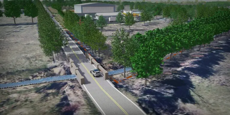 Weaver Consultants Group (WCG) was retained by the client to create renderings of a proposed landfill transfer station from the viewpoint of the roadway in front of where the new facility would be located. The purpose of these images was to demonstrate how effective the berm and landscaping would be in screening the facility. Using 3D software, WCG produced images that accurately depict the proposed buildings, berms, and landscape. By simulating the view from inside a car, we provided a true sense of the site and landscape improvements from various angles.