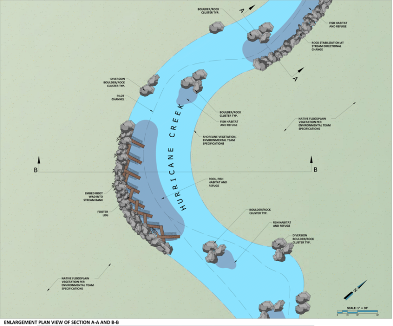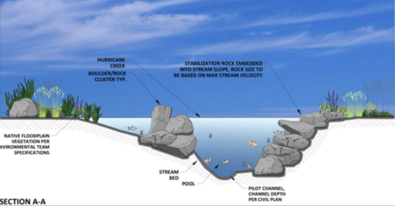 Hurricane Creek currently runs between two landfill stockpiles within Arlington Landfill. In order to connect the two stockpiles for a landfill expansion, the stream must be relocated. Weaver Consultants Group (WCG) has been retained to collaborate with the US Army Corps of Engineers to obtain a permit for the stream relocation. As part of the realignment process, stream enhancements will be provided for water quality, wetland improvements, and wetland reforestation. Additionally, the project will include open waterways with rock stabilization at stream directional changes, root wads, filter logs, and native shoreline vegetation to address stream bank erosion and fish habitat.