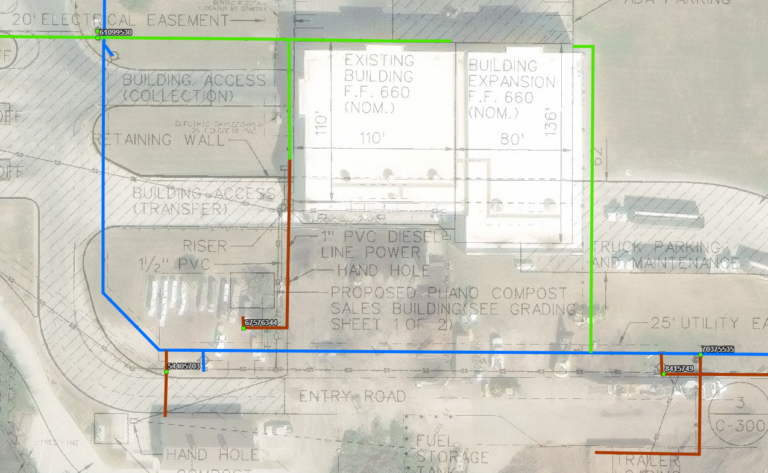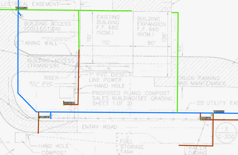 Weaver Consultants Group (WCG) performed field surveying and Geographic Information System (GIS) mapping to assist a client in Northern Texas with utility inventory and infrastructure management. Multiple entities operated on the transfer station facility, and the client was uncertain about billing and the assignment of water meters across the site.